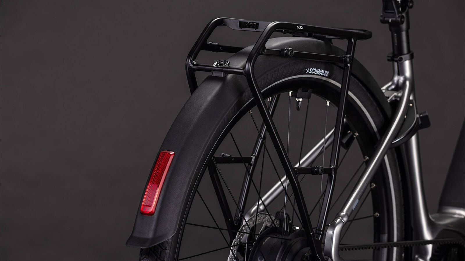 It's the detail you can't see that makes the Supreme Hybrid frame so good at its job. For example the 600Wh Bosch PowerTube battery is stowed neatly inside the down tube while Smooth Welding complements the frame's clean almost organic lines. The Performance Line motor delivers smooth pedal assistance up to 75 Nm making light work of any journey. Integrated Cable Routing and X-Connect keep wires and cables out of sight and out of harm's way. There's a wide range of sizes from 42cm to 58cm so everyone should be able to find their ideal fit. The Semi-Integrated Carrier 2.0 is equal parts neat and sturdy giving you a solid platform on which to carry... well whatever you need. And we added mudguards a full lighting system and a kickstand so you really are all set.