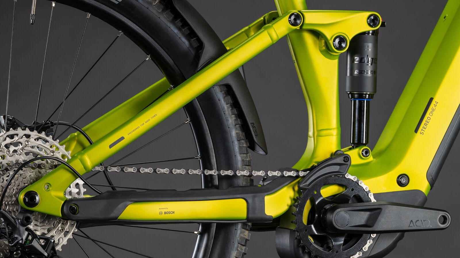 | Description | Ready for challenging trails? Because the Stereo Hybrid ONE44 Pro 800 definitely is. With 140mm of travel from its Suntour air suspension fork and rear shock it's got what it takes to keep its 2.6in Schwalbe Nobby Nic tyres rubber side down and rolling. Shimano's legendary XT 1x12 gears get your power to the trail while powerful 4-piston Shimano hydraulic disc brakes with 203mm rotors help you keep your speed in check. Just as well because the Bosch CX motor - with 800Wh battery - is capable of supplying up to 100Nm of extra help when you most need it. Size Split means it's easy to find the perfect fit and SIC 2.0 mounting points make conversion to touring or commuting duties simple. It's ready! Frame description We built the Stereo Hybrid ONE44 to be as adaptable as it is capable. With its compact 800Wh PowerTube battery and powerful Bosch CX drive unit with up to 100Nm of assistance it features 140mm of front- and rear-wheel travel and includes space for mudguards. Internal Cable Routing flatters the frame's clean organic lines. There's a set of SIC 2.0 mounting points for the addition of an optional luggage carrier the UDH dropout is future-proof and the Direct Mount chain guard is neat and unobtrusive. Plus with Size Split there's a frame to suit almost every rider. We built the Stereo Hybrid ONE44 to be as adaptable as it is capable. With its compact 800Wh PowerTube battery and powerful Bosch CX drive unit with up to 100Nm of assistance it features 140mm of front- and rear-wheel travel and includes space for mudguards. Internal Cable Routing flatters the frame's clean organic lines. There's a set of SIC 2.0 mounting points for the addition of an optional luggage carrier the UDH dropout is future-proof and the Direct Mount chain guard is neat and unobtrusive. Plus with Size Split there's a frame to suit almost every rider. Frame: Aluminum Superlite Gravity Casting Technology Efficient Comfort Control FSP 4-Link Agile Comfort Geometry Boost 148 UDHTM Full Integrated Battery Advanced Internal Cable Routing Kickstand/Fender/Carrier Mounting Points Integrated Seatclamp Fork: SR Suntour XCR36 2CR Air Tapered 15x110mm 140mm Shock: SR Suntour EdgeX R 205x60mm (27.5: 185x55mm) Rebound Adjust Trunnion Mount Shock hardware: Top: 54mm Trunnion Mount Bottom: 22.2x8mm Headset: ACROS AZF-1034 ICR (Integrated Cable Routing) Top Zero-Stack 1 1/2" (ZS 56mm) Bottom Zero-Stack 1 1/2" (ZS 56mm) X-Connect Interface Stem: CUBE Performance Stem E-MTB 35 FPI-Link Handlebar: CUBE Rise Trail Bar 35 Grips: ACID Hybrid Perform Rear derailleur: Shimano XT RD-M8100-SGS ShadowPlus 12-Speed Chain guide: Reverse Flip-Guide E-Chain Guide Direct Mount I-Plate Shifters: Shimano Deore SL-M6100-IR Direct Attach Rapidfire-Plus Brake system: Shimano BR-MT420 Hydr. Disc Brake (203/203) Crankset: ACID MTB Hybrid Pro 27.5: 36T // 29: 34T Crankset chainring sizes: 36T Cassette: Shimano Deore CS-M6100 10-51T Number of gears: 12 Chain: KMC e12 Wheelset (system wheels): ACID SLX 30 32/32 Spokes 15x110mm/12x148mm Tubeless Ready Tires: Schwalbe Nobby Nic Performance 2.6 Pedals: ACID PP MTB Saddle: ACID Venec EMTB Plus 145 Seat post: CUBE Dropper Post Handlebar Lever Internal Cable Routing 31.6mm Seat post = dropper Yes/No: YES Engine: Bosch Drive Unit Performance Line CX max. 100Nm (BDU38) Battery: Bosch PowerTube 800 Charger: Bosch 2A Remote: Bosch Purion 200 with Integrated Display |