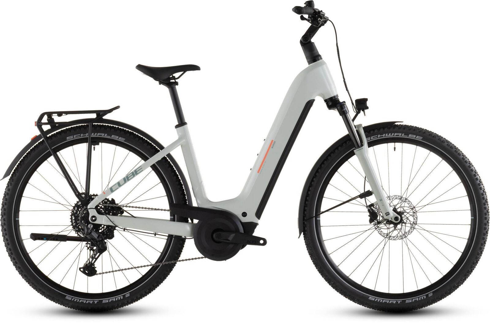 | Description | Who wouldn't want to have some freewheeling adventures in their life? With its rugged practicality and included accessories the Nuride Hybrid Performance 600 opens the joy of two-wheeled travel to almost everyone. There's a suspension fork and wide grippy Schwalbe tyres for a comfortable ride even on rougher roads and tracks. Powerful Shimano hydraulic disc brakes ensure safe slowing and stopping whatever the weather. We included all the accessories you're ever likely to need - including a carrier mudguards lights and kickstand - because you never know what might happen tomorrow. And the icing on the cake of course is the powerful Bosch Performance motor with 600Wh battery and easy-to-use Shimano Cues 10-speed gears to help speed you on your way. The Nuride Hybrid Performance's Easy Entry frame lives up to its name. It's easy to live with easy to ride and easy on the eye. Efficient Comfort Geometry does exactly what it says and the frame as you'd expect is very straightforward to mount and dismount - and that combination makes this the ideal bike for anyone. The neatly integrated 600Wh PowerTube battery and Bosch Performance motor - with Smart System - give your pedalling a smooth powerful boost just when you need it so you can make light work of any journey. And we included lights kickstand and mudguards so you're fully accessorised right from the start. Frame: Aluminium Superlite Gravity Casting Technology Efficient Comfort Geometry Boost148 UDHTM Fully Integrated Battery Advanced Internal Cable Routing Kickstand/Fender/Carrier Mounting Points Fork: SR Suntour X32 NLO Tapered 15x110mm 100mm Headset: ACROS AZF-1035 ICR (Integrated Cable Routing) Top Zero-Stack 1 1/2" (ZS 56mm) Bottom Zero-Stack 1 1/2" (ZS 56mm) HIC Stem: CUBE Comfort Stem Pro 31.8mm Adjustable Handlebar: CUBE Comfort Trail Bar 720mm Grips: ACID Hybrid Tour Rear derailleur: Shimano Cues RD-U6000-GS 10-Speed Shifters: Shimano Cues SL-U6000 Rapidfire-Plus Brake system: Shimano BR-MT200 Hydr. Disc Brake (180) Crankset: ACID MTB Hybrid Pro 38T Crankset chainring sizes: 38T Cassette: Shimano Cues CS-LG300 11-48T Number of gears: 10 Chain: KMC eGlide Wheelset (system wheels): ACID Pro 25 32/32 Spokes 15x110mm/12x148mm Tubeless Ready Tires: Schwalbe Smart Sam ActiveL 57-622 Pedals: ACID PP Trekking Saddle: ACID Sequence 180 Seat post: CUBE Performance Post 31.6mm Front light: ACID Front Light PRO-E 60 X-Connect 12V DC Rear light: ACID Mudguard Rear Light PRO-E 12V DC Kickstand: ACID FM Pure Kickstand Mudguard: ACID 65 BB-Mount Bell: Easy Bell Carrier: ACID Semi-Integrated Carrier ACID RILink Adapter Compatible Engine: Bosch Drive Unit Performance Line 75Nm (BDU34) Battery: Bosch PowerTube 600 Charger: Bosch 2A Remote: Bosch Purion 200 with Integrated Display |