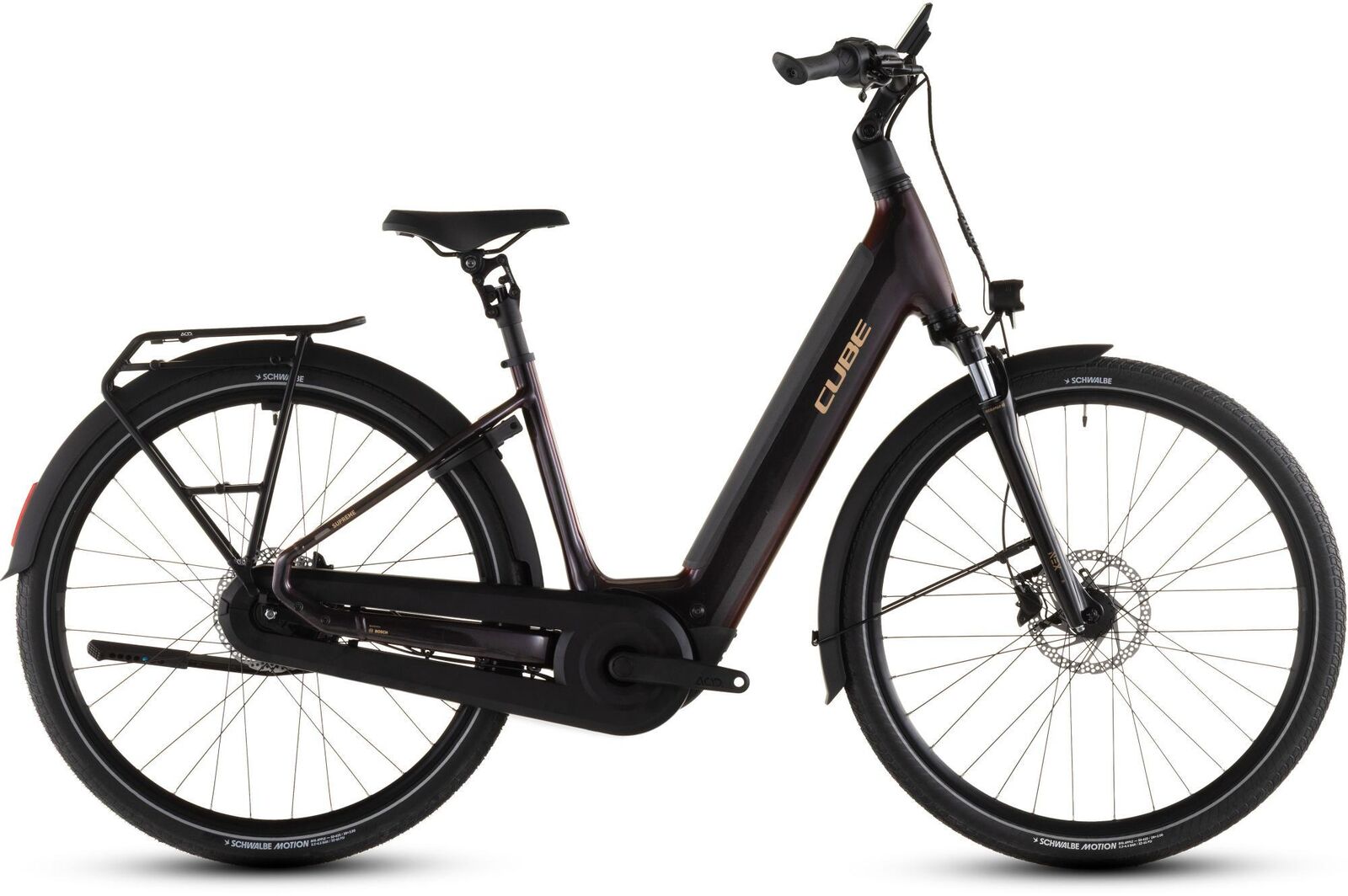 The devil is always in the detail. With the Supreme Hybrid frame Bosch's Performance PX motor provides quiet and smooth pedal assistance up to 90Nm. The 600Wh Bosch PowerTube battery is stowed neatly inside the down tube while Smooth Welding complements the frame's clean almost organic lines. Integrated Cable Routing and X-Connect keep wires and cables out of sight and out of harm's way. There's a wide range of sizes from 42cm to 58cm so everyone should be able to find their ideal fit. The Semi-Integrated Carrier 2.0 is equal parts neat and sturdy giving you a solid platform on which to carry... well whatever you need. And we added mudguards a full lighting system and a kickstand so you really are all set.
